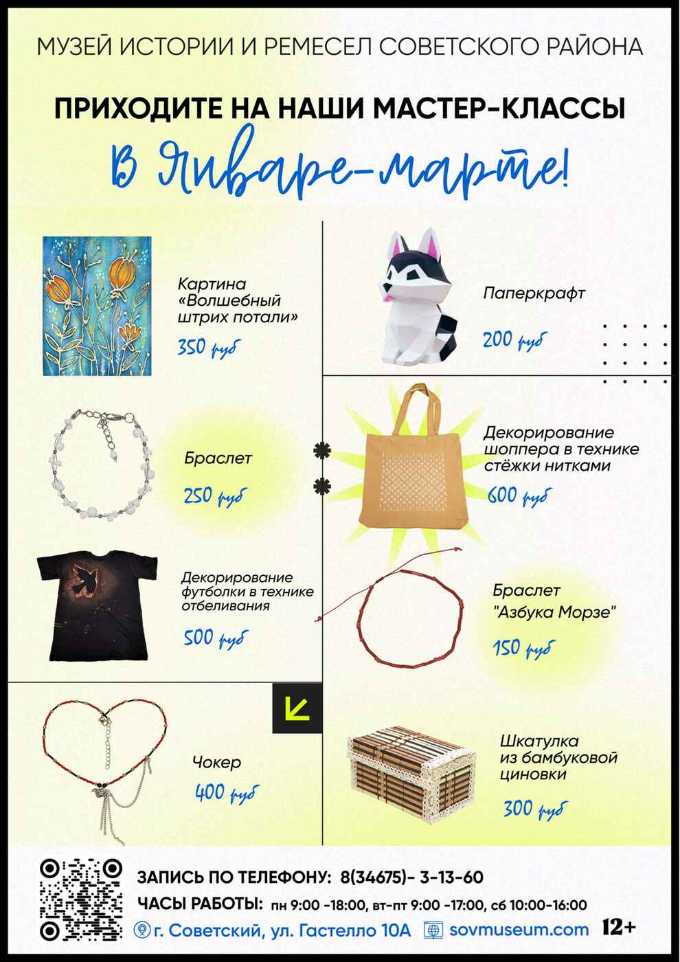 Дорогие друзья! Приглашаем вас творчески и увлекательно провести время в Музее истории и ремесел Советского района. В январе-марте вас ожидает много интересного!
