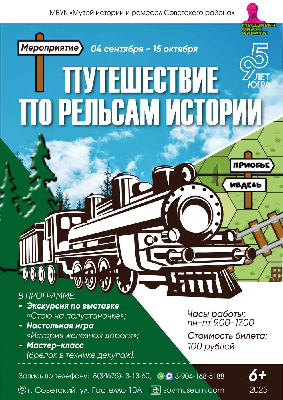 У нас с этим связана целая история! А с чем у вас ассоциируется железная дорога? С предвкушением путешествий, встреч с родными или, может, с загадками прошлого? До 15 октября приглашаем вас в музейное «Путешествие по рельсам истории»! Наш новый проект познакомит вас с тем, как развивалась железнодорожная отрасль в Советском районе. Вас ждет экскурсия по выставке «Стою на полустаночке», мастер-класс по созданию брелка в технике декупаж и настольная игра «История железной дороги», созданная сотрудниками музея.