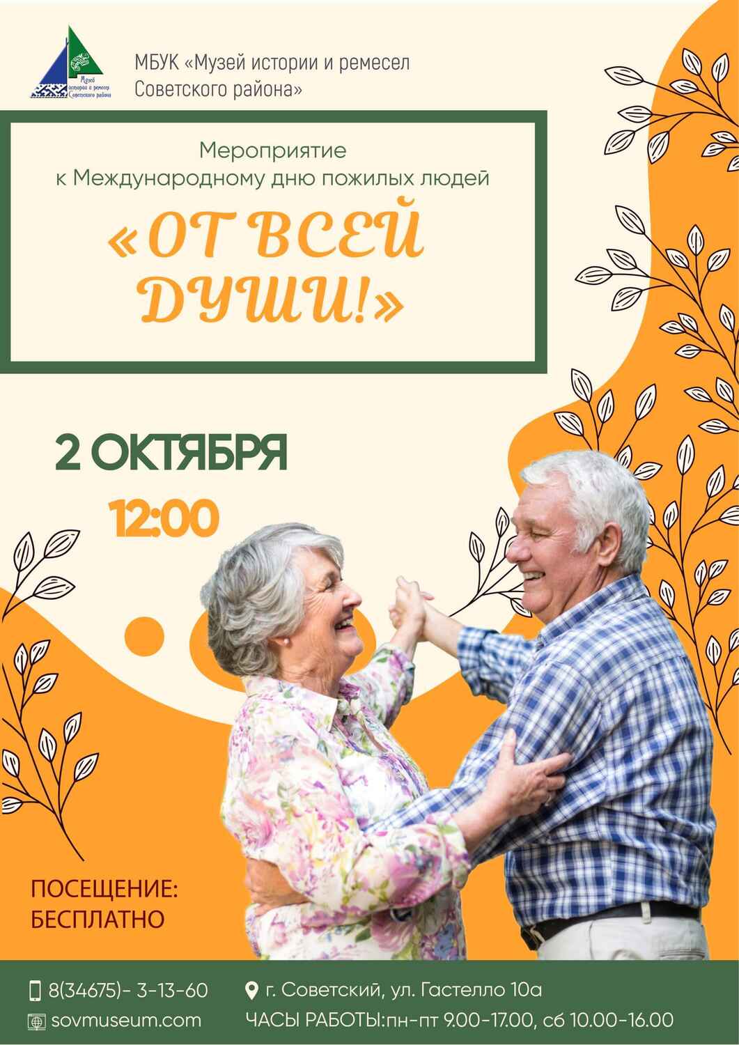 Вот и наступил октябрь. Это не только золотая осенняя пора, но и время, когда мы с особым вниманием и заботой относимся к старшему поколению. В рамках «Декады пожилого человека» с 1 по 11 октября Музей истории и ремесел Советского района приглашает представителей элегантного возраста на особую программу. Проведите эти осенние дни в теплой компании, наполняя их новыми знаниями, творчеством и общением! Зовите друзей и приходите вместе - будет душевно и интересно!