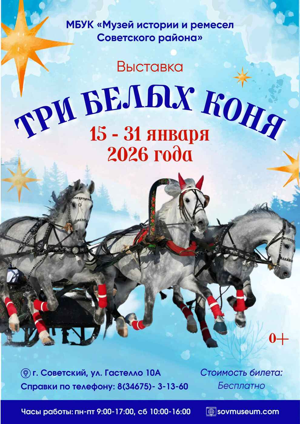 В Музее истории и ремесел Советского района открылась выставка «Три белых коня», посвященная символу наступившего 2026 года - грациозной лошади. Выставка знакомит с удивительным миром этих благородных животных, сыгравших колоссальную роль в истории человечества. Лошади были незаменимыми помощниками человека. Они служили средством передвижения, участвовали в сражениях, помогали в охоте и строительстве, обрабатывали поля и перевозили грузы, трудились в шахтах и рудниках.
