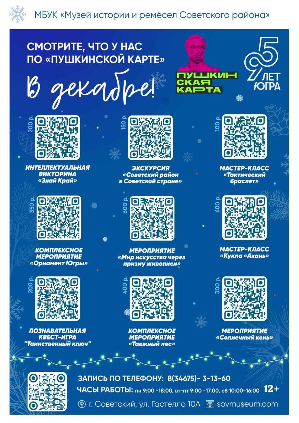 Друзья, у нас вы можете приобрести билеты по «Пушкинской карте», и в этом декабре предлагаем вам посетить следующие события: