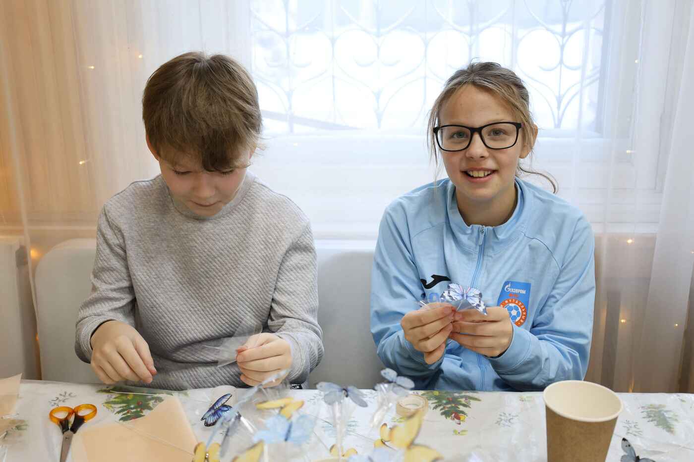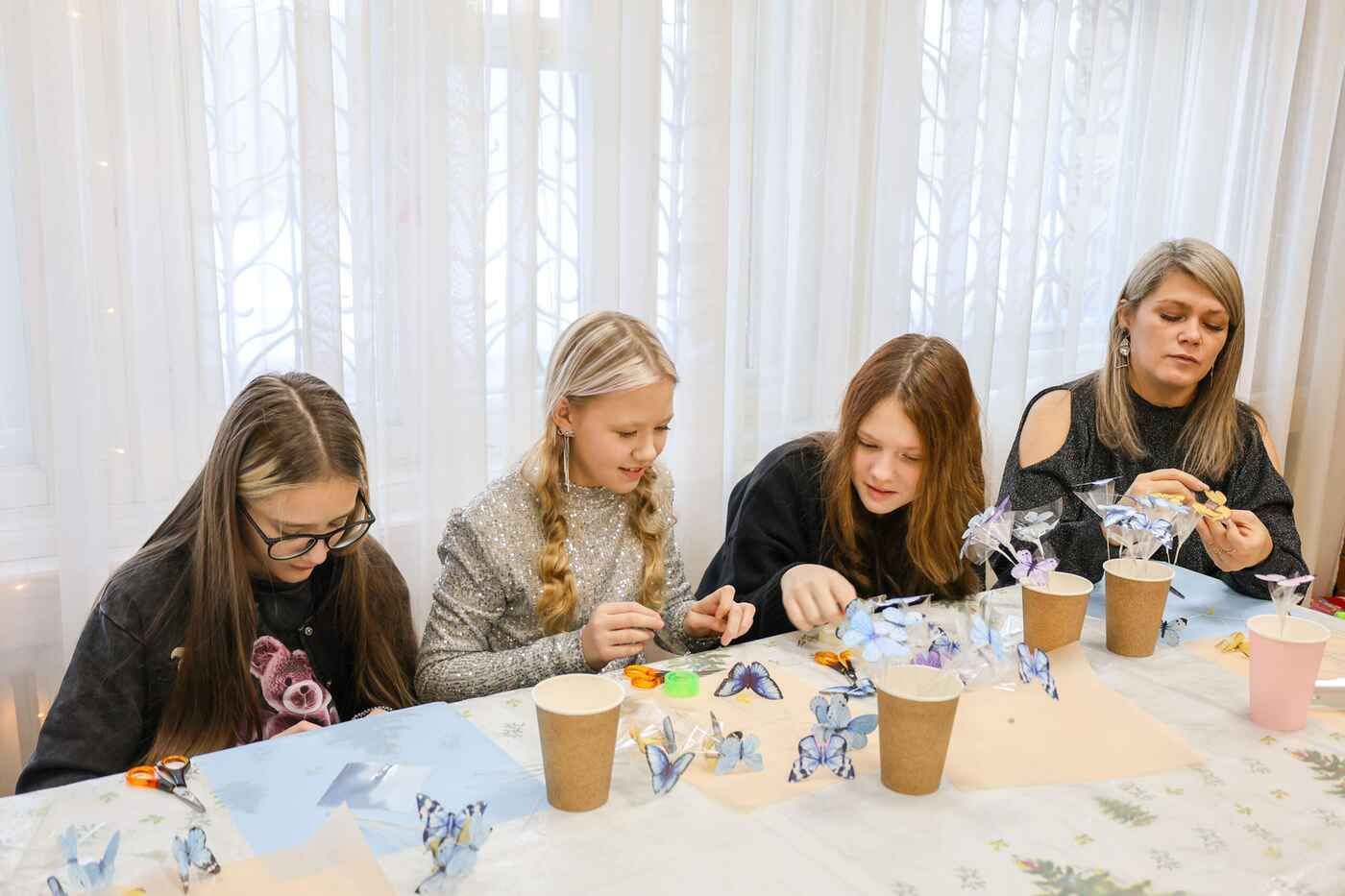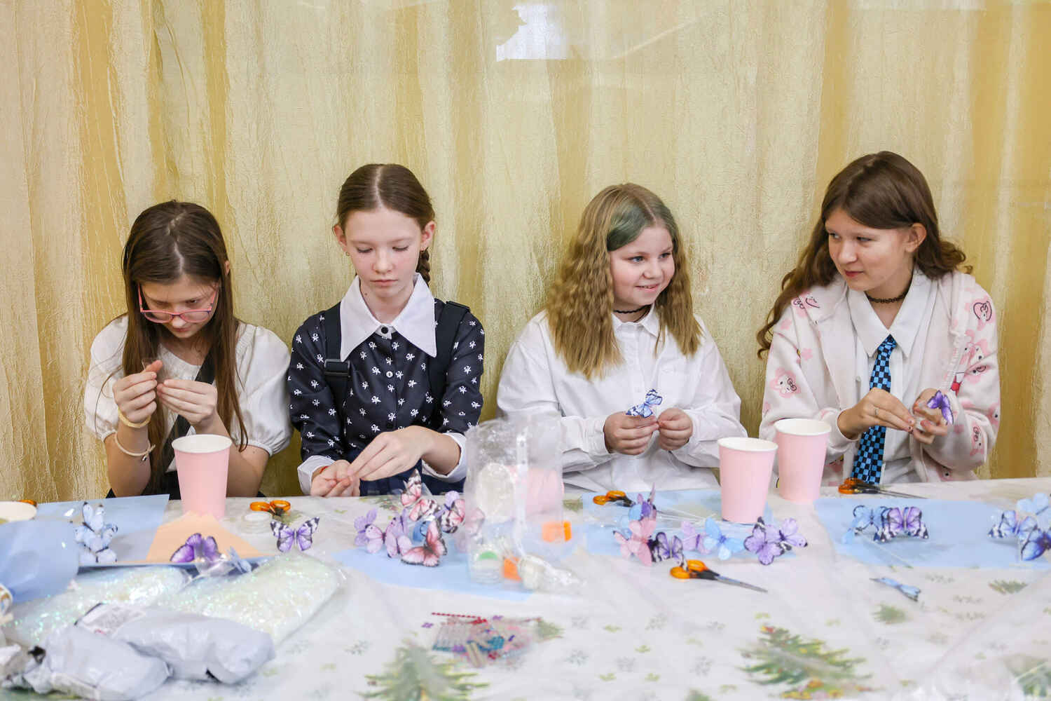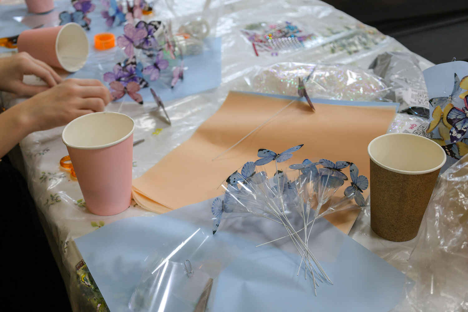 С большим увлечением ребята создавали необычные композиции. Вместо живых цветов они использовали изящных декоративных бабочек. Каждый стаканчик превратился в миниатюрный сад, наполненный яркими красками и безграничной фантазией. А тёплая атмосфера творчества и дружеского общения согревала ничуть не хуже ароматного горячего чая!