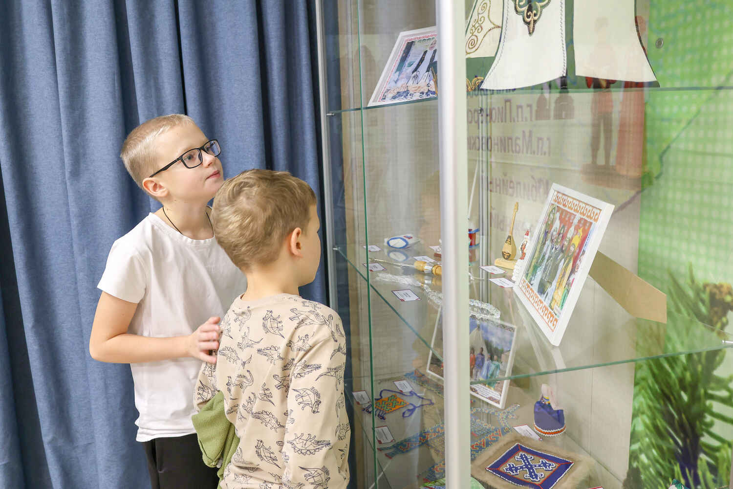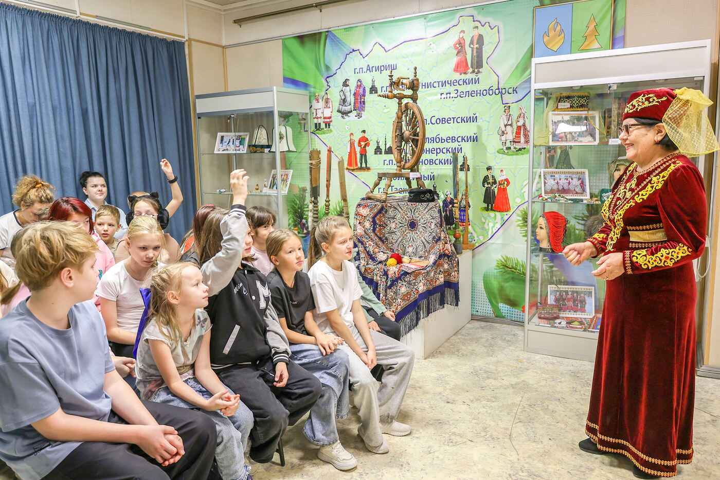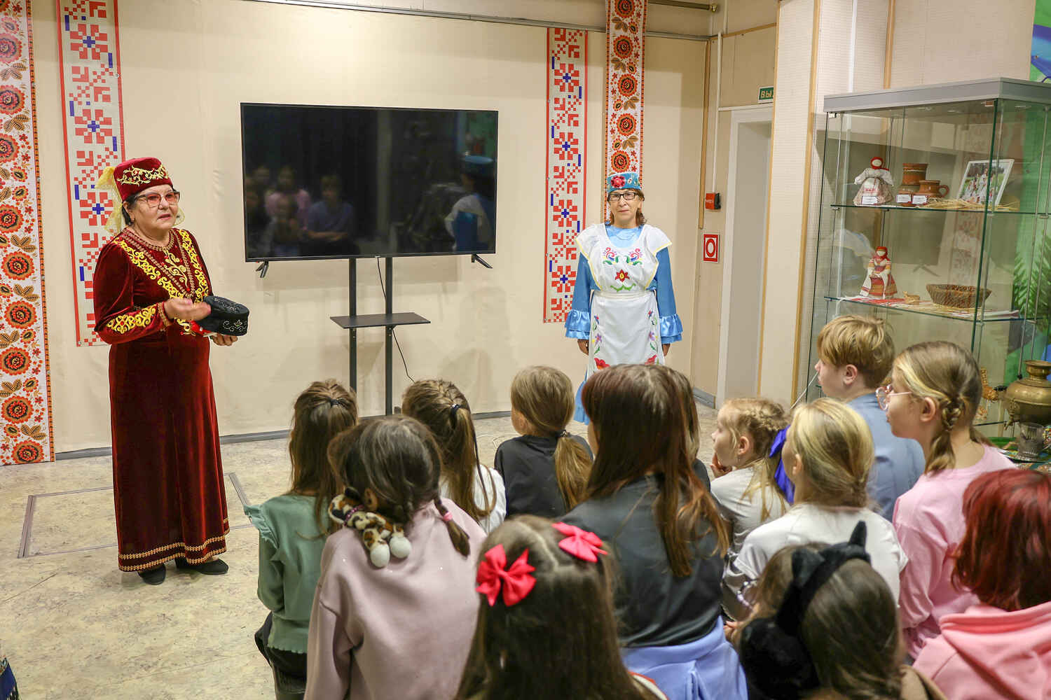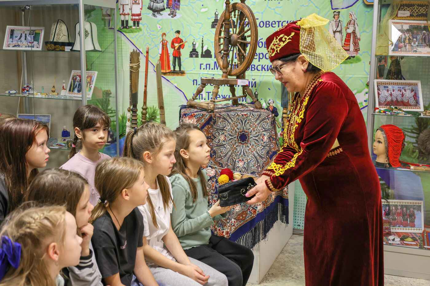 Ребята с большим интересом погрузились в многогранный мир национальностей Советского района. Они рассмотрели традиционные предметы быта, уникальные элементы культуры, изящные женские украшения и головные уборы, а также кукол в национальных костюмах.
