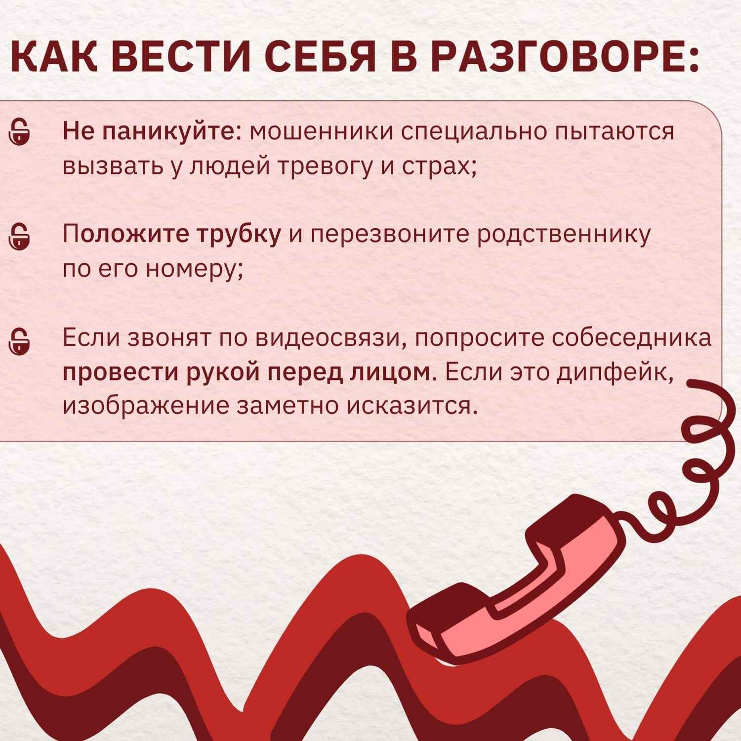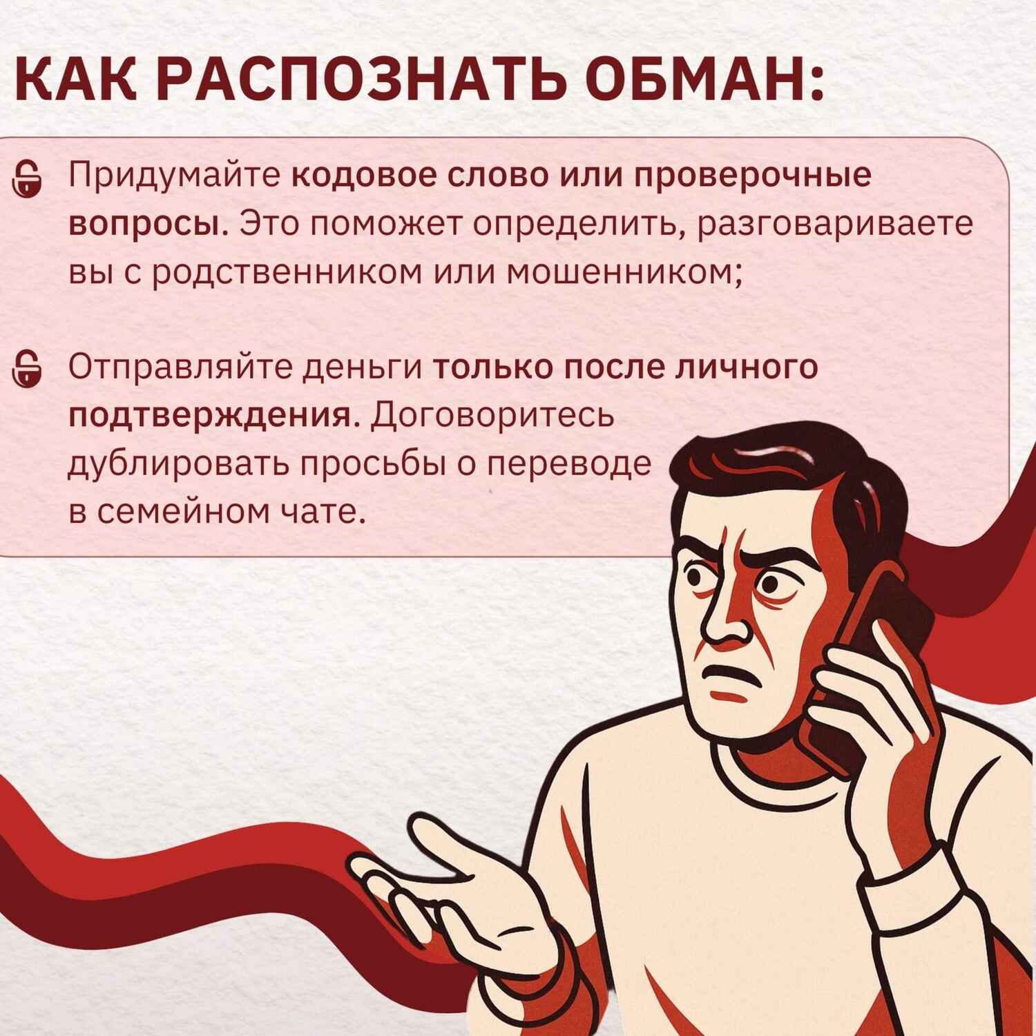 - Будьте внимательны к деталям. Мошенники часто создают искусственные голоса с небольшими ошибками в интонации или произношении. Если что-то кажется странным - это повод насторожиться