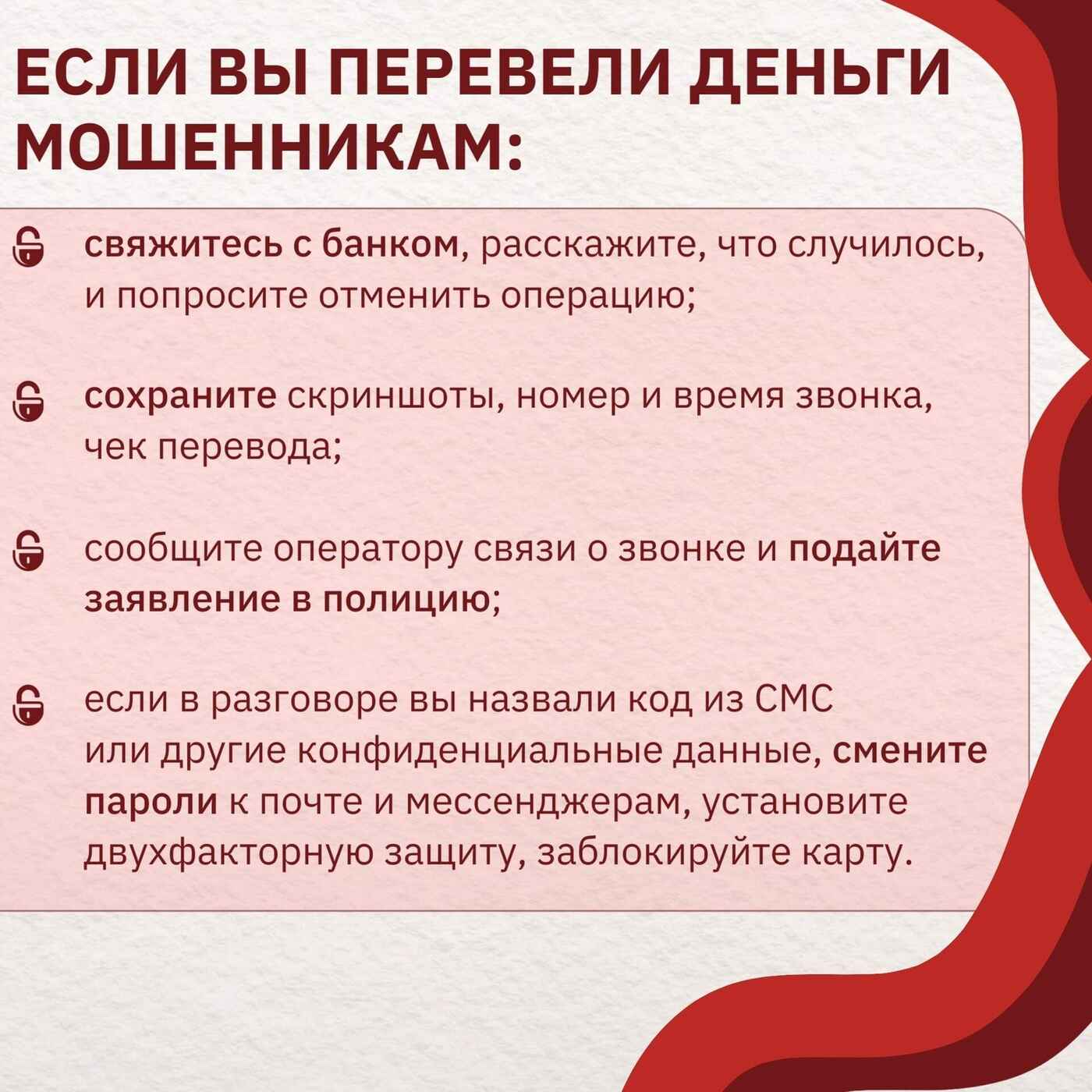 - Не спешите переводить деньги. Даже если голос кажется знакомым, остановитесь и подумайте. Позвоните напрямую этому человеку по известному вам номеру, чтобы проверить ситуацию