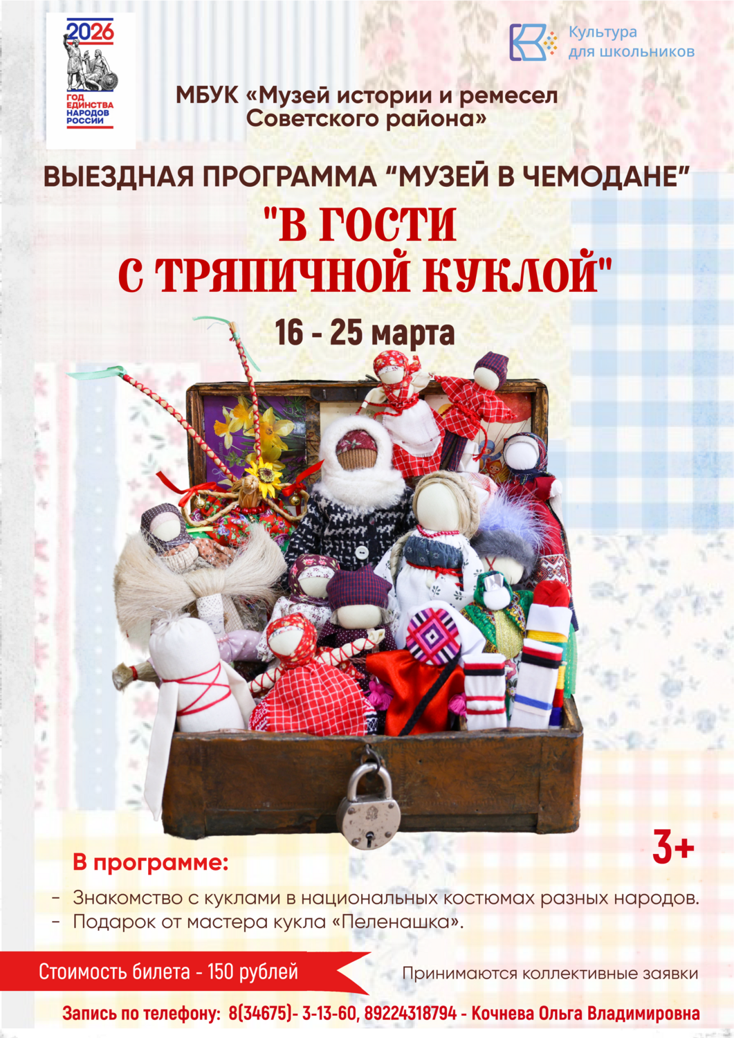 Друзья, с 16 марта мы открываем сезон выездных встреч в рамках программы «Музей в чемодане». Приглашаем вас в гости... к тряпичной кукле!