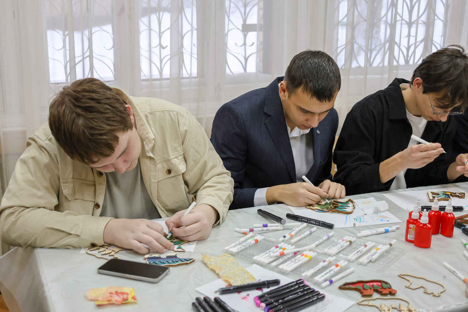 Под руководством музейных мастеров студенты расписывали деревянные фигуры-пазлы в форме лесных зверей. Работы, как всегда, получились стильными и оригинальными.