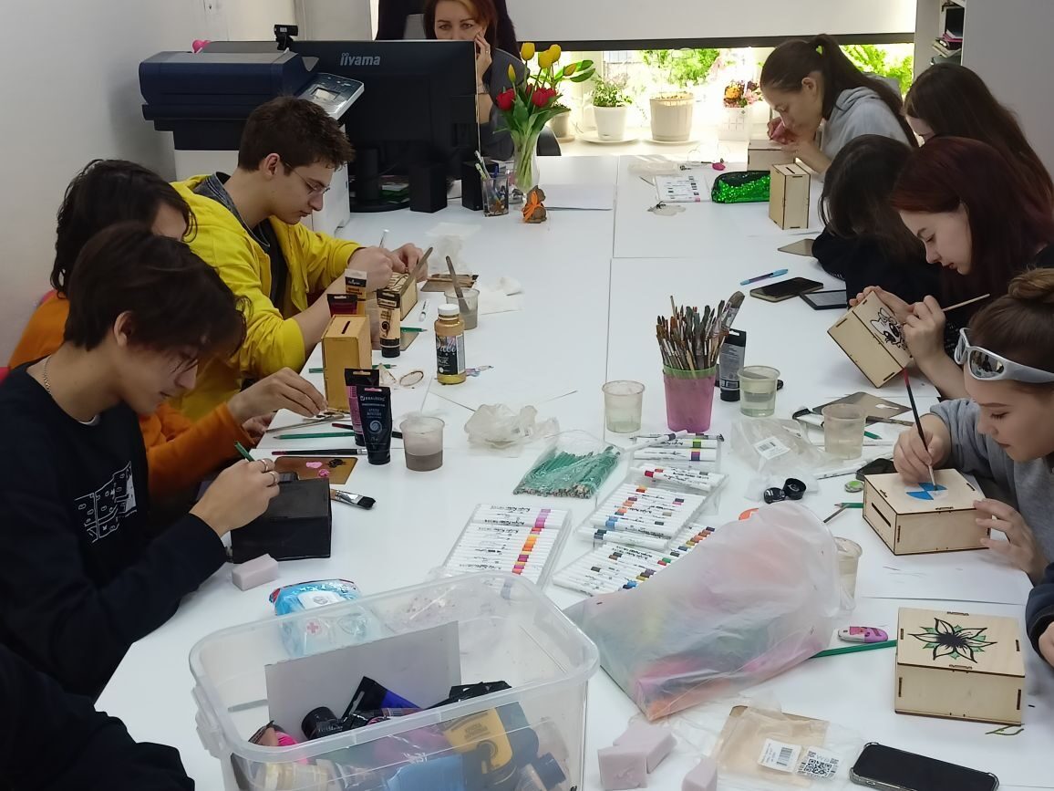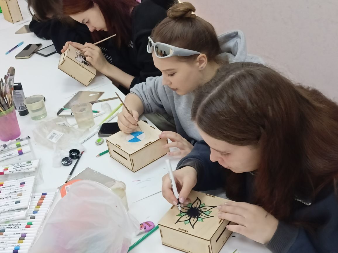 Мероприятие, организованное Музеем истории и ремесел Советского района, позволило каждому участнику проявить фантазию и индивидуальность. Под чутким руководством специалиста музея студенты работали с акриловыми красками, создавая собственные уникальные рисунки на деревянных заготовках.