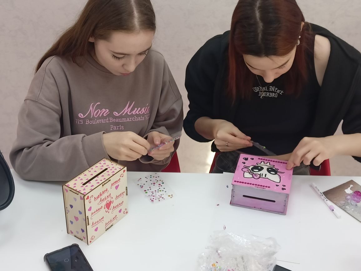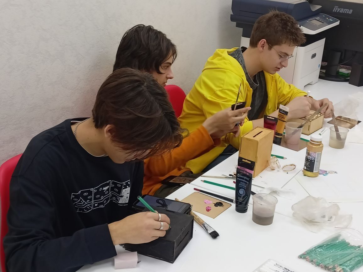 Студенты II курса группы «Повара-кондитеры» Советского политехнического колледжа расширили свои профессиональные горизонты, вновь приняв участие в творческом мастер-классе. В этот раз ребята расписывали деревянные копилки.
