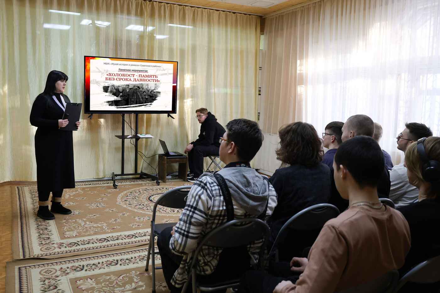 Сегодня в Музее истории Советского района прошло памятное мероприятие «Холокост - память без срока давности». Его участниками стали представители клуба активного долголетия БУ «КЦСОН» и студенты Советского политехнического колледжа.