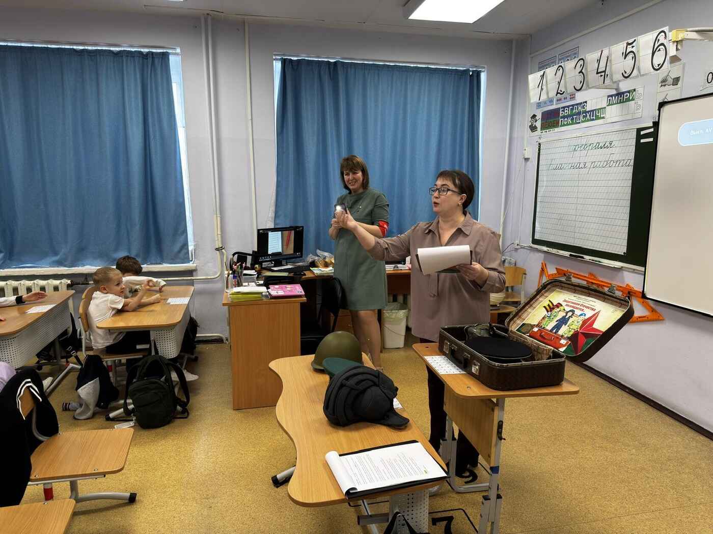 Первоклассники узнали об истории праздника и познакомились с современными военными профессиями. Подлинные экспонаты из музейного чемодана помогли оживить прошлое и сделали рассказ экскурсоводов более наглядным.
