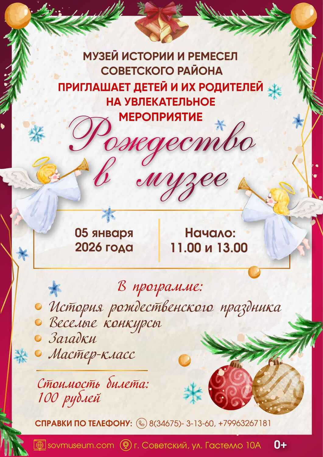 Дорогие друзья! Музей истории и ремёсел Советского района приглашает вас 5 января в 11.00 и 13.00 на празднование Рождества в уютной и познавательной атмосфере. Мы подготовили для вас увлекательную программу: