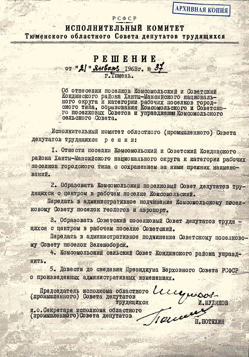 Сегодня, 21 января, наш город отмечает свой день рождения. Именно в этот день в 1963 году небольшой таёжный посёлок получил официальный статус.