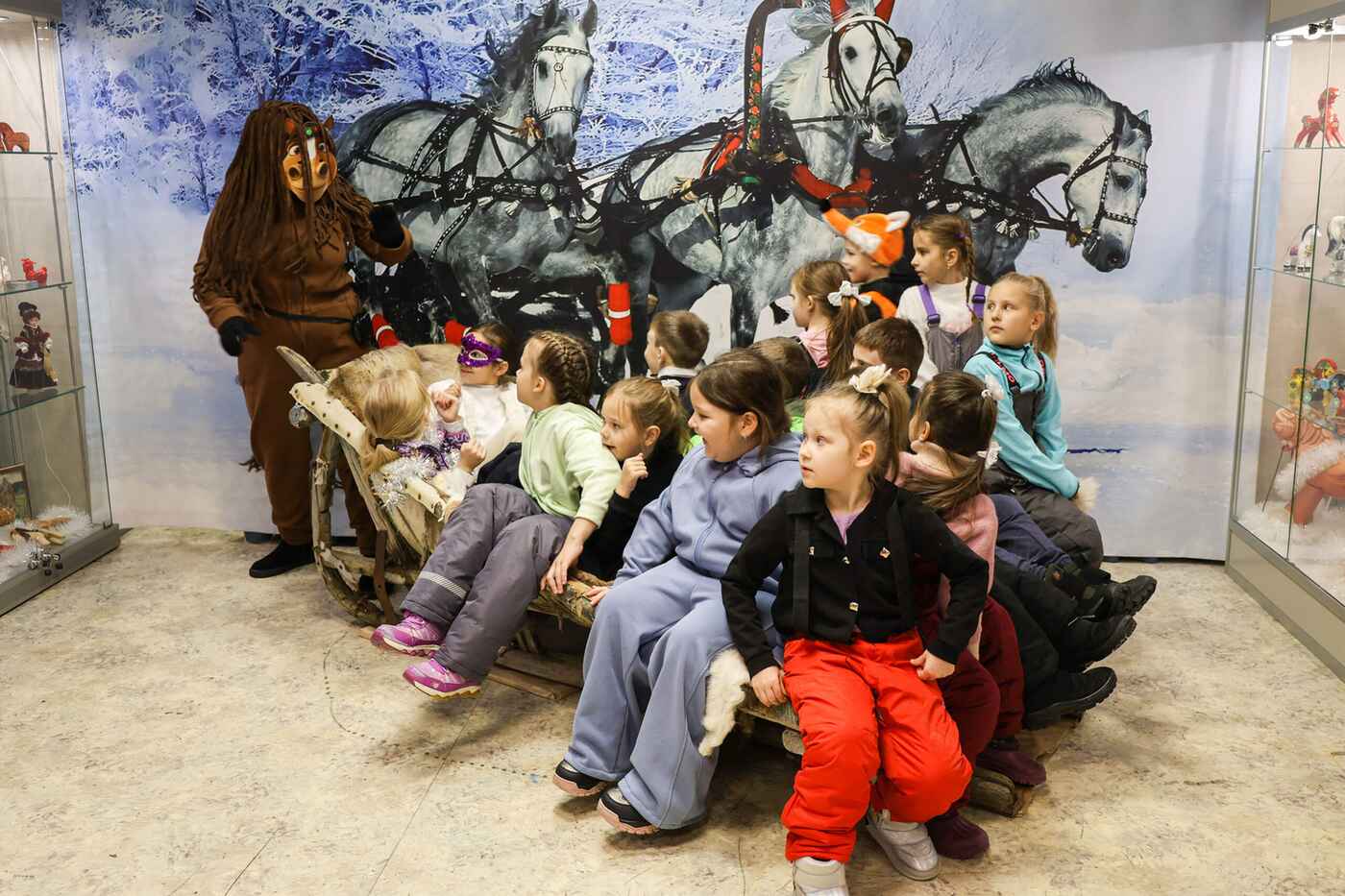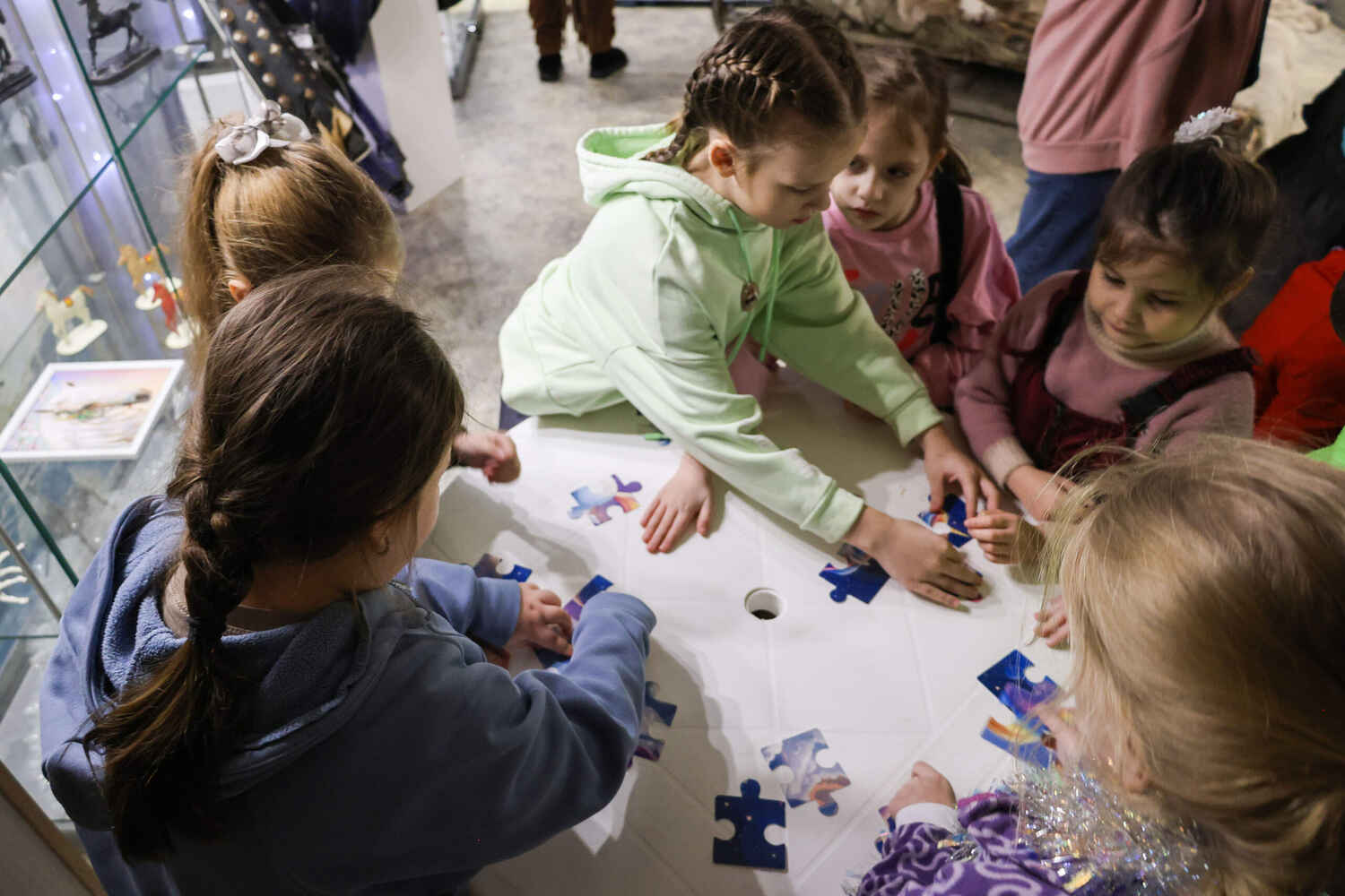 Путешествие началось с визита в уютную конную лавку. Ребята с интересом рассматривали миниатюрных лошадок на выставке «Я люблю свою лошадку», делились впечатлениями и угадывали, какая же лошадка зашифрована в музейных пазлах.