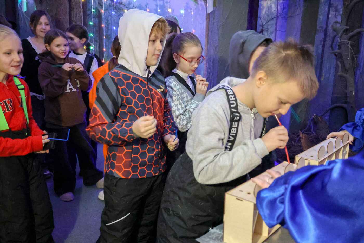 Далее дорога привела учеников в тридевятое царство. Там их ждали неожиданные сюрпризы. Сперва встреча с персонажами «Двое из ларца», а затем - увлекательная загадка о любимом напитке всех лошадей. Юные гости с блеском справились с заданием и двинулись дальше.