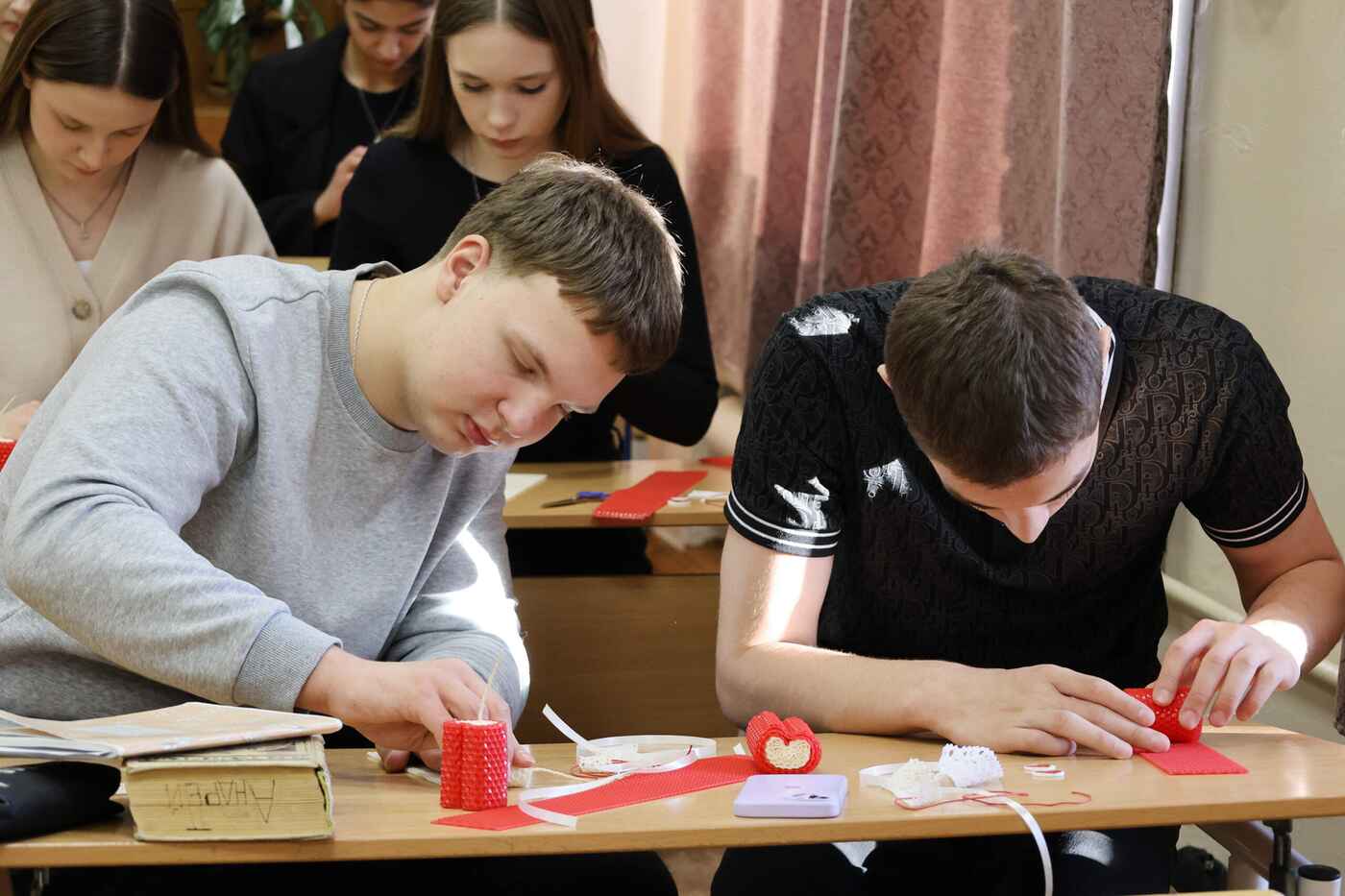 Ребята окунулись в атмосферу творчества. Часть из них создала своими руками свечи из натуральной вощины в форме красно-белых сердечек. Теплые, экологичные и очень душевные, эти свечи обязательно станут символом уюта.